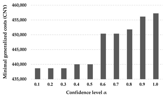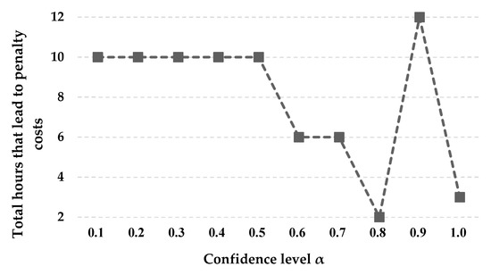 Majority of the current studies on the multimodal routing neglects the demand uncertainty and use deterministic numbers to represent the demands [2,3,17,19,20,21,22,23,24,26,29,30,31,32,34]. When using deterministic data to estimate the uncertain parameters, underestimation and overestimation might exist [18]. The multimodal transportation network is capacitated [18]. Underestimation on the demand might result in the infeasibility of the planned road–rail multimodal route since the actual demand might exceed the capacities of some transportation services on the route. Overestimation might mean that the actual best road–rail multimodal route is identified to be infeasible since the estimated demand exceeds the capacities of some transportation services on the actual best route, while the actual demand satisfies the capacity constraint. When the decision makers need to serve multiple transportation orders, underestimation and overestimation of the demands might exist simultaneously, which makes the situation more complicated. Consequently, using deterministic demands in the road–rail multimodal routing problem is clearly infeasible. The demand uncertainty hence should be integrated into the problem in order to improve the transportation reliability.