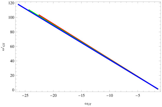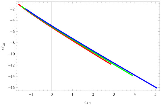 Trajectories of for (red), (green) and (blue) indicates more accelerating (freezing) phase as compared with thawing for non-conserved EMT.