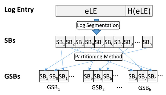 where Block_Size is the size of the segmentation block for ensuring log confidentiality, e.g., 5 or 10 bytes. Both B1 and B2 are determined by the type of log data, e.g., character, number and size of overlapping segmentation.