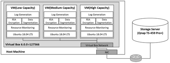 The eCLASS’s log-data-segmentation and distributed-storage method was faster in log processing time than CLASS’s RSA encryption method (eCLASS 10 bytes and CLASS 1024 bit RSA, low capacity (249%), medium capacity (139%), high capacity (8%)) However, as edge-node computing capacity increased, the gap in processing time between data encryption and log partitioning decreased. For this reason, it was important to verify the size of the identifiable segmentation log and find the appropriate segmentation size for edge-node performance. These results can also be seen from a computing-usage (CPU) perspective. In computing usage (storage), CLASS, which performs RSA encryption, needed more storage space than eCLASS, which segments only log data and generates index files. Therefore, we verified that eCLASS is more efficient than CLASS in an edge cloud. Finally, with regard to operation-cost evaluation of CLASS and eCLASS in the edge service models, cost evaluation was related to CPU usage time and stored log data size. Storage cost was the same, but costs depend on VM computing capacity. In GM, when conducting log processing of 200 kb of log entries, the cost is $0.0000177 in low capacity, but $0.0000225 in high capacity. This confirmed that the same process was carried out at a 52% increase in high capacity.