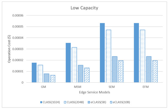 Comparison of operation cost between edge service models in low capacity.