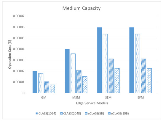 Comparison of operation cost between edge service models in medium capacity.