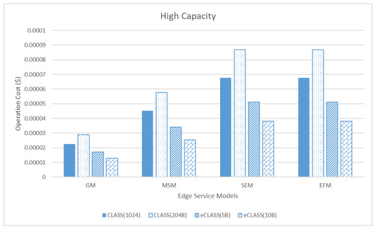 Comparison of operation cost between edge service models in high capacity.