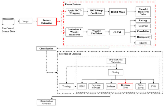 Finally, the Curvelet features obtained from the prior process in Section 3.1.1 are fused in the texture features obtained in step 3 to produce highly informative fusion features. The parameter settings of Curvelet, Wavelet and GLCM used in the proposed method are summarized in Table 1.