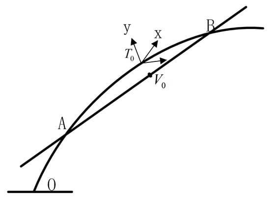 Considering that the orbit center line is a plane curve and parallel to the horizontal plane, the position vector of the coordinate origin of in the reference system O can be obtained from Figure 5: