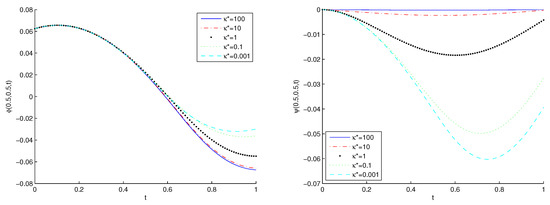 with parameter varying between and 100. No mechanical forces are now applied, and we also impose an initial condition for , being the remaining initial conditions assumed to be zero.