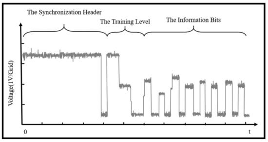 For MPAM, all of the information is encoded into the amplitude of the signal; the amplitude of the transmitted signal takes M different values, which implies that each pulse conveys bits per symbol time [15]. MPAM is superior to the other modulations when it comes to the data transmission rate and implementation complexity.