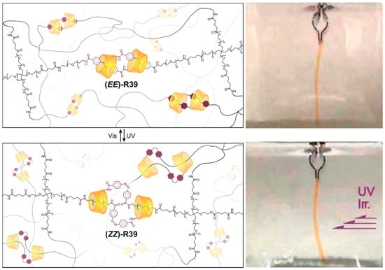- Sakai, T.; Murayama, H.; Nagano, S.; Takeoka, Y.; Kidowaki, M.; Ito, K.; Seki, T. Photoresponsive Slide-Ring Gel. Adv. Mater. 2007, 19, 2023–2025. [Google Scholar] [CrossRef]