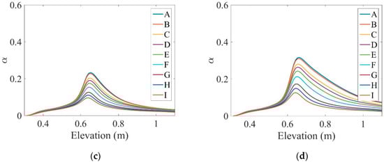 Changes in the vapor volume fraction along the pipe length for the four modes stated in Table 1: (a) case 1, (b) case 2, (c) case 3, and (d) case 4.