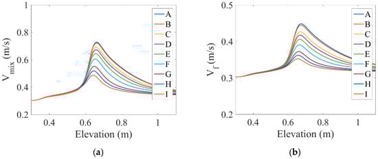 Variations in mixture velocity and fluid velocity along the tube length under the influence of different magnetic fields are shown in Figure 6a,b, respectively. As can be seen, in the heated section, both velocities increased, and this increment was higher for the mixed velocity due to the greater effect of higher gas velocity. According to the figure, using MHD forces reduced the peak velocity and created a smoother profile.
