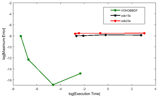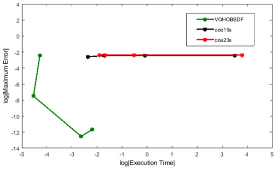 Further innovation on BDF saw the block method being associated with BDF method, also known as block backward differentiation formula (BBDF). The innovation is made at which BBDF is capable to approximate several points instead of one point only at the same time. BBDF has shown its excellent success as this method is capable of providing better approximations and reducing the computational effort for solving the first- and second-order stiff ODE problems [12,13,14,15,16]. In this paper, we develop constant step size of order three, four and five VOHOBBDF and fit the three methods in a single code by applying an adaptive order approach. This approach can enhance the computational efficiency for the direct approximations of the problem in Equation (1) such as minimize computational cost as compared to the BBDF while maintaining its accuracy. Due to the advantages, VOHOBBDF can produce more accurate results, manage to reduce the total number of steps and less time is needed to compute the solutions.