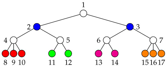 - Cheng, C.T. On computing the distinguishing numbers of trees and forests. Electron. J. Combin. 2006, 13, R11. [Google Scholar]