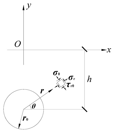 The calculations of ground stresses induced by pile foundation loads adopt the Mindlin’s solution [14] in both analytical calculation procedures. The calculation of ground stresses due to tunnel excavation adopts the analytical solutions of ground stresses in a gravity field (Park [15], as shown in Figure 3), whereas the calculation of ground stresses (Xiang and Feng [11]) adopts the analytical solutions of ground stresses without considering the gravity field. Moreover, complex boundary conditions (Pinto and Whittle [16] and Tong et al. [17], as shown in Figure 4) are used in this paper as the tunnel boundary conditions instead of the boundary conditions used by Xiang and Feng [11].