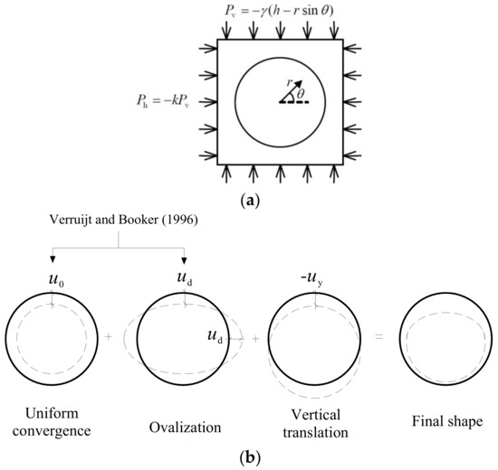 - Tong, L.; Xie, K.H.; Cheng, Y.F.; Lu, M.M.; Wang, K. Elastic solution of sallow tunnels in clays considering oval deformation of ground. Rock Soil Mech. 2009, 30, 393–398. (In Chinese) [Google Scholar]