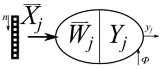 The neuron model is shown in Figure 5. We can see, that the neuron has N inputs ( x 1 , ... , x N ) () and one output ( y ) . Every input is multiplied by the input weight ( w 1 , ... , w N ) , this value changes during the learning process. The output has application function Y , which decides the output value. Activation functions can be different and usually are nonlinear (signum function, limited linear function, standard logistic function, hyperbolic tangents). Examples of these functions are described in [14]. The neuron bias is represented by the input b , and this signal is also multiplied by weight w 0 . If we look at the neuron model, we can see that the neuron is based on principles of digital filters. The mathematical description of one neuron is in Equation (3). The benefit of this model is the easy application on the FPGA with faster processing speed. Applications of the neurons and neural networks on the FPGA are described in [15].