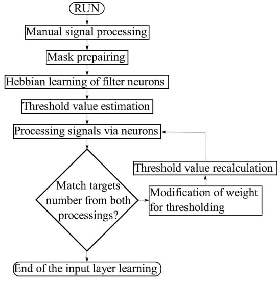 Figure 9. Algorithm for the learning of the input layer of the neural network for the radar signal processing.
