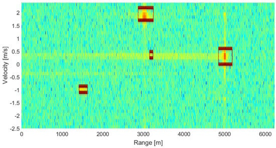 An example of another work in this field can be found in [18]. These authors measure the position and Doppler shifts of the targets in this research. They are using the CFAR (constant false alarm rate) method for detection and tracking of the target. The setting of their algorithm and the evaluation study are not published. Another approach is used in [19], where other authors use another type of the algorithm for the processing of the velocity measurement. The second group of authors are using target route tracking for velocity estimation of the targets in this research, but they did not describe their algorithm exactly. From the results which they published, we can see that they also have problems with false alerts and losing the targets. The efficiency of this algorithm was not published. Better research on this topic is described in [20]. Here, the authors described their algorithm and made an evaluation of the success. Their algorithm has, according to tests, very good results. These results are comparable with our algorithm except for Doppler shifts or velocities. This is because they did not include these measurements in their research.