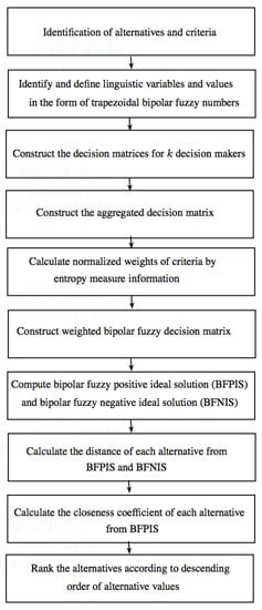The flow-chart of the trapezoidal bipolar fuzzy TOPSIS method.