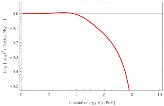 This gives, for a fixed detected energy, the neutrino energy as a function of z. Now, differentiating the previous relation, we obtain . Substituting here Equation (13), we get the differential variation of the neutrino energy due to the expansion of the Universe: