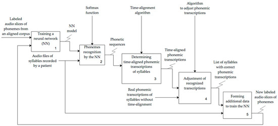 If a phonemic composition of a syllable became completely correct after the adjustment, the time-aligned phonemic transcription of this syllable was used to create new data for further neural network training.