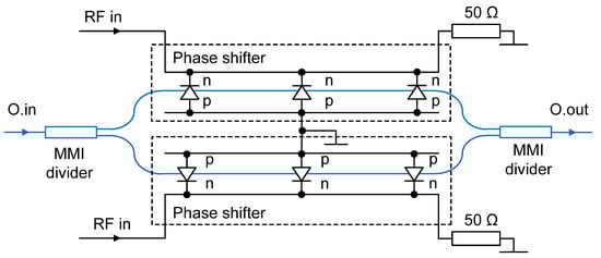 Nowadays, a new microwave photonics discipline exploring the possibilities of using optical devices and systems for processing and generating a microwave signal has appeared. It has become especially popular recently, since the cost of optical devices is constantly decreasing and a large number of inexpensive optical components (lasers, photodetectors, multiplexers, electro-optical modulators etc.) have appeared on the market. Great prospects for the use of microwave photonic devices in mass products open up with the embedding of SOI-based optical processes into traditional microelectronic technology based on Si/SiGe. Currently, this area is actively developing. Several foundries routinely offer these process options to manufacture both optical and combined electro-optical devices [,,,,]. In the case of successful extension of these technologies, a relatively inexpensive transition of giant silicon foundries to the production of electro-optical integrated circuits and their widespread introduction to the mass-market segment becomes possible.