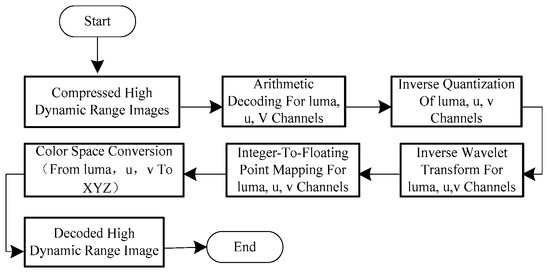 where the nominal dynamic ranges of self-band , , and are the digits allocated to the index and tail of the current wavelet coefficients. The nominal dynamic range of is the number of bits per pixel plus the number of increments in sub-band of the original image. For the channel, different quantization coefficients are used. For the luma channel, set and , and for the channel, set and .