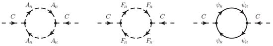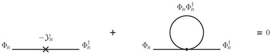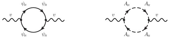 Here, we have introduced for convenience. Furthermore, there are loop diagrams as in Figure 9 giving