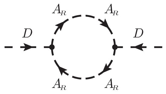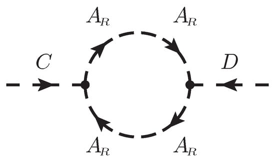 For the spin zero bosonic components we have a tree level quadratic term in the Lagrangian, as well as one diagram contributing to the two-point function of as in Figure 7, which gives the amplitude as