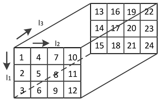 To make tensor matricization and matrix tensorization easy to understand, a 3-dimensional tensor is provided below as an example. Suppose is a tensor of size as Figure 1 shows.