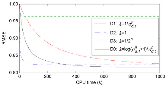 From Figure 3 we can see that (i) D3 performs the worst, and its RMSE is significantly higher than that of other designs; (ii) D0 and D2 have better performances than D1; and (iii) D2 converges very fast in the first 300 s, but then is overtaken by D0. Overall, our design (D0) can achieve a higher convergence speed and a lower error.