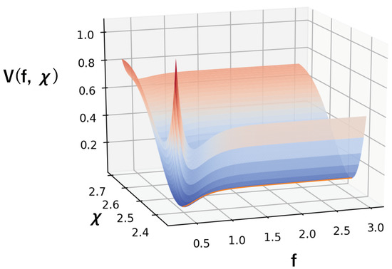 where it vanishes (Minkowski vacuum). A profile of the scalar potential in Equation (90) is given in Figure 2.