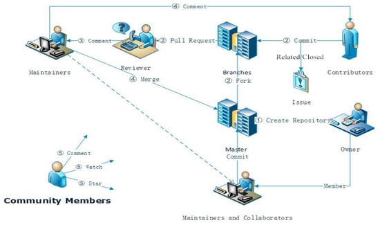 In the GitHub ecosystem, the main working process of a project is as follows: First, the owner creates the open source code repository, the contributor forks the source code repository and makes the commit to the open source program and modifies the submitted pull request. Then, the reviewer evaluates the submitted pull request and submitted comment. Finally, the integrator evaluates the comment submitted by reviewer to determine whether he will merge the commit comment submitted by the contributor. During the whole process, other members can pay attention to the projects and developers. And the