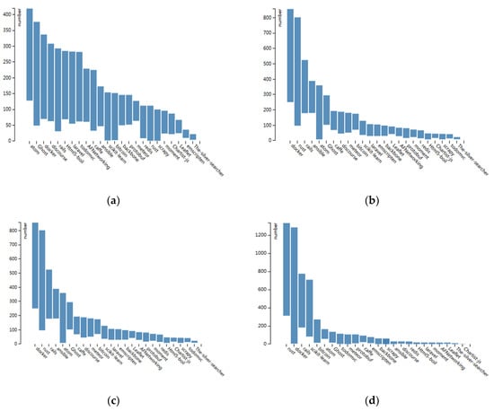 Figure 4, we can get the monthly average change numbers of different behaviors, and we tried to classify the level into three levels, four levels, and five levels, and we found these results had little differences, so we chose the minimum number to classify the levels. A project that contains a large number of activities that fall into high or middle level results in a greater vigor number. At the same time, according to the distribution of behavior, we set the vigor values of the high, medium, and low intervals to 1, 0.75, and 0.5, respectively. The values of 1, 0.75, and 0.5 were used to calculate the vigor in Formula (1), and we performed a large number of experiments and found the values of 1, 0.75, and 0.5 could better show the results.