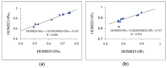 Linear relations between the structural HOMED indices for N derivatives (a) and P derivatives (b) of furan and thiophene. HOMED-ONn and HOMED-OPn correspond to furans and HOMED-SNn and HOMED-SPn refer to thiophenes. Data are taken from Table 3.