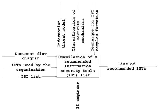 The technique requires a definitive description of the lineup of the security mechanisms implemented and of IST potentially recommended by the IS engineer. Figure 1 shows the business process "Formation of a recommended IST list" in Integrated computer-aided manufacturing DEFinition (IDEF0) notation.