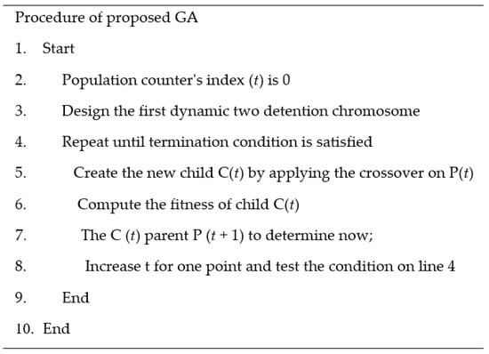 The proposed GA uses developed sampling space. This space is defined as follow: if the initial population size is α and after applying crossover and mutation operations β children are produced, the sampling spec size will be . The sampling method to produce the next generation will be elitism and the rolled-wheel selection method.