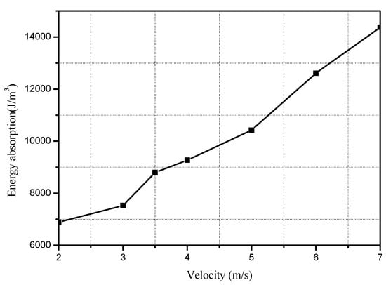 Figure 6 shows the energy absorption capacity of the concrete honeycomb of porosity 0.846 increases with increasing initial loading velocity, with initial plate impacting speed ranging from 2–7 m/s.