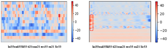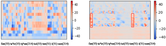 where “a” and “n” are the IPA of the Tujia language, and “-” is the blank. As observed from Equation (4), multiple input sequences can be mapped to one output. Therefore, the CTC can not only increase the decoding speed but also automatically optimize the correspondence between input and output sequences during the training process.