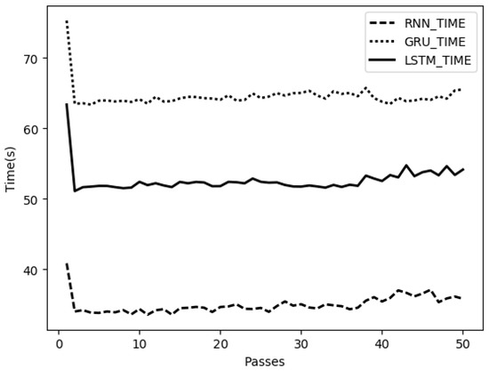 In Figure 6, the abscissa represents the number of iterations of the training model, and the ordinate represents the time of training different RNN cell states.