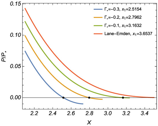 The Lane–Emden ratio coincides with (51), when . The values are visualized in the Table 1 for several values of the guiding parameter .