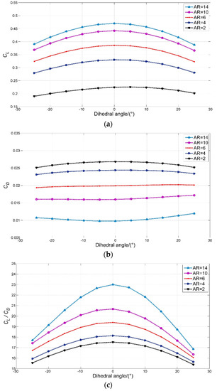 The stability of the hydrofoil can be improved by using a dihedral hydrofoil as shown in Figure 16. The calculation results of the hydrodynamic performance of the dihedral hydrofoil with different aspect ratios based on the cubic B-spline panel method are shown in Figure 17.
