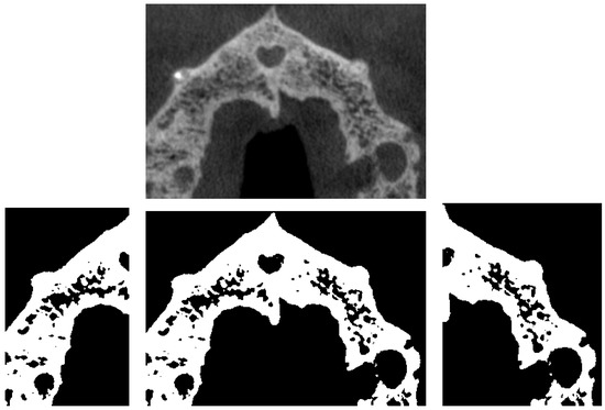 Graphical representation of an actual cone beam computed tomography (CBCT) from a patient that took part in our study (left) and its corresponding binary images.