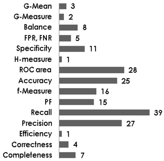 - Lessmann, S.; Baesens, B.; Mues, C.; Pietsch, S. Benchmarking Classification Models for Software Defect Prediction: A Proposed Framework and Novel Findings. IEEE Trans. Softw. Eng. 2008, 34, 485–496. [Google Scholar] [CrossRef]
