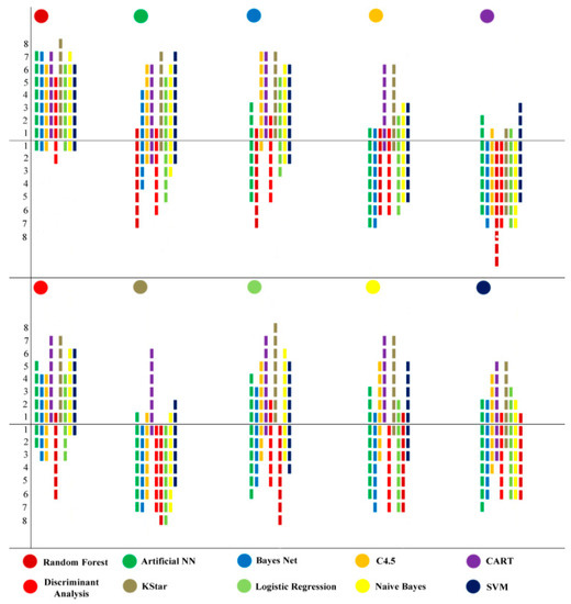 - Rodríguez, D.; Ruiz, R.; Riquelme, J.C.; Aguilar–Ruiz, J.S.S. Searching for Rules to Detect Defective Modules: A Subgroup Discovery Approach. Inf. Sci. 2012, 191, 14–30. [Google Scholar] [CrossRef]
