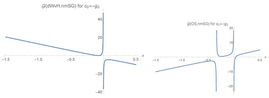 Finally, we summarize the dWvH- gadgets and OS- gadgets in the physically interesting cases of , , and . In these cases, is known to reduce to a representation that is part of a tower of higher spin that extends to SUSY [33,36,37,38,39], old-minimal supergravity [33], and new-minimal supergravity [46], respectively. Both gadgets and diverge for and diverges for , as shown in Figure 7.
