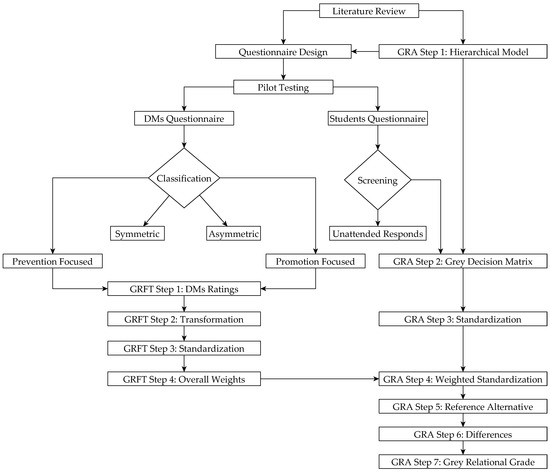 Flowchart of the Grey Regulatory Focus Theory (GRFT) weighting method combined with Grey Relational Analysis (GRA).