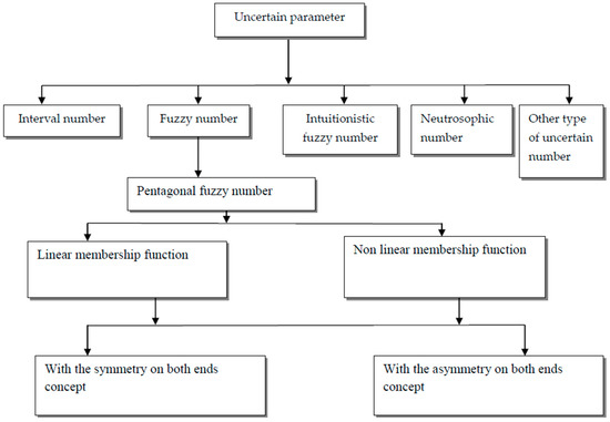 Suppose some mountaineers want to calculate the approximate height of a mountain range. They have different points of view after looking the mountain from different angles and in different situations so they use different kinds of uncertain parameters. The parameters might be anything from an interval number, a triangular fuzzy number, a trapezoidal fuzzy number. etc.