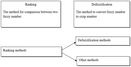We can easily see by the following Figure 2 for the difference and relation between defuzzification and ranking.
