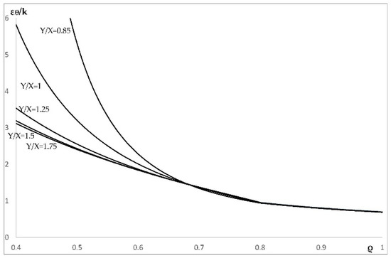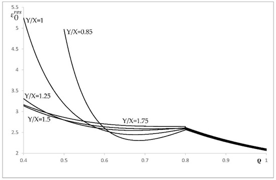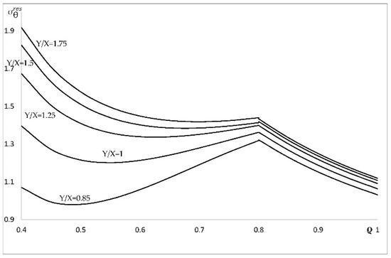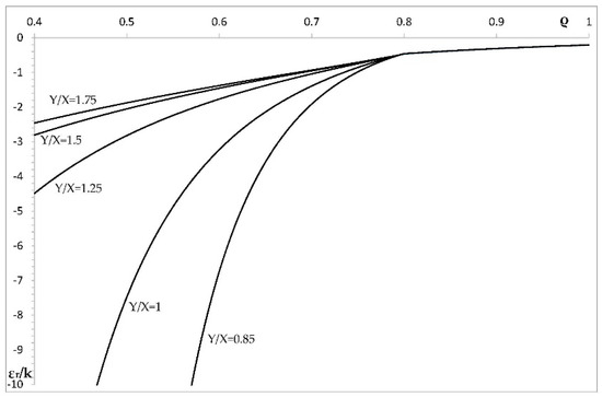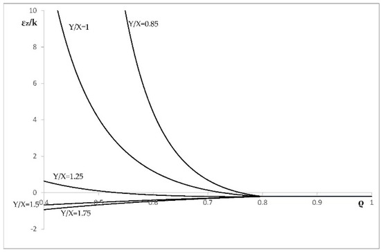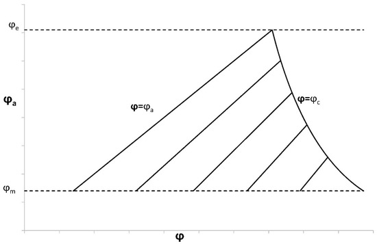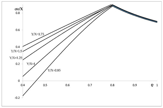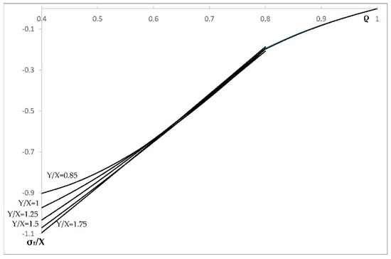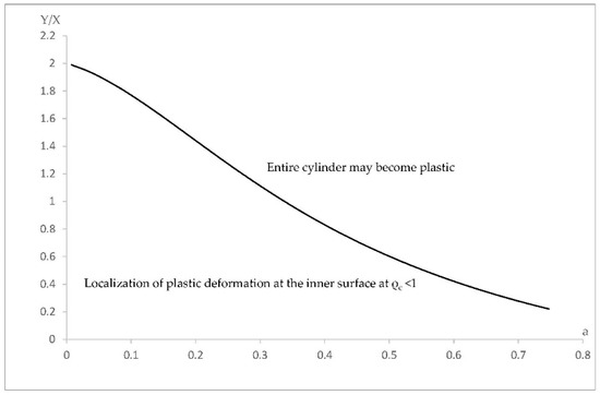 Here, Q can be eliminated using its definition. Then, Equation (32) determines a relationship between a and corresponding to the state of stress in question. This relation is illustrated in Figure 1. If the point corresponding to a pair lies above the curve, then the entire disc becomes plastic before the localization of plastic deformation at the inner surface of the cylinder, and vice versa.