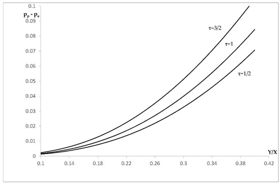 It is also of importance to consider the difference between and . It is seen from Equations (19) and (31) that is the function only of , whereas depends on , a, and . The variation of with at for several values of is depicted in Figure 2. It is seen from this figure that the difference is rather small if the ratio is small enough. This means that the localization of plastic deformation at the inner surface of the cylinder occurs at the very beginning of plastic yielding.